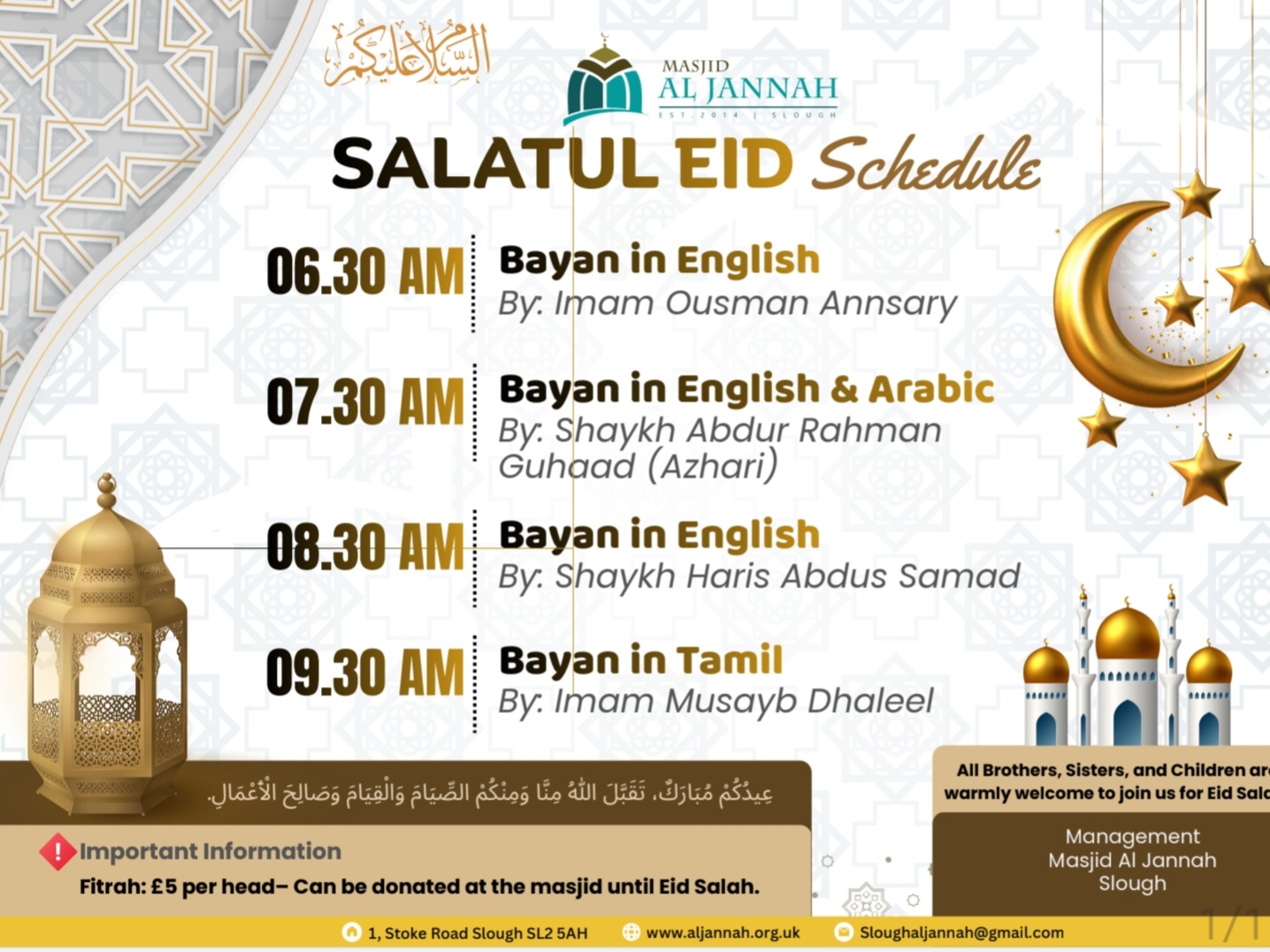 Jummah Bayan starts 12:45 to 13:10